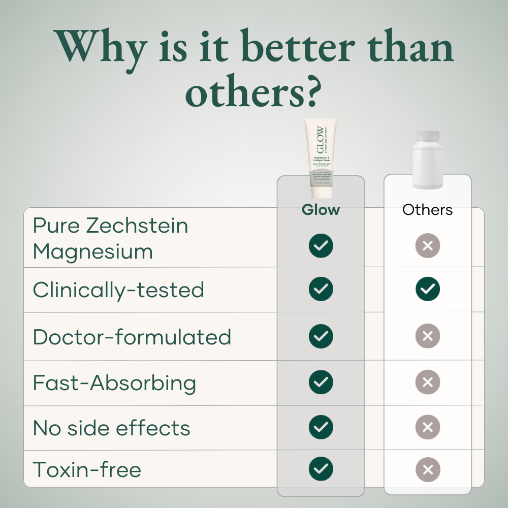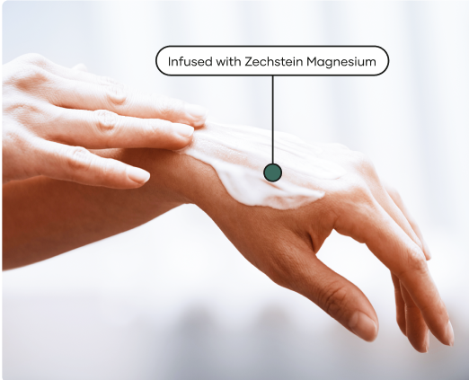 Our magnesium body lotion contains premium Zechstein magnesium chloride at optimal concentration for topical absorption. Each application delivers approximately 400mg of elemental magnesium - equivalent to taking magnesium supplements without digestive issues. The bioavailable magnesium is enhanced with collagen and natural moisturizers.